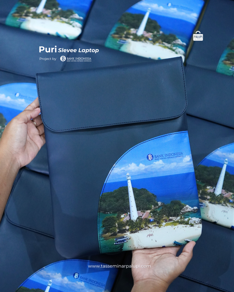 Tas Laptop Sleeve Pilihan paling simpel — sarung pelindung laptop yang ringan dan compact. Ideal sebagai item tambahan dalam goodie bag seminar atau sebagai pelengkap paket pengadaan laptop.